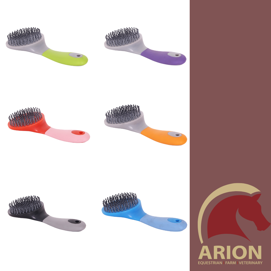 Two tone, Soft Touch secure grip handle with strong synthetic bristles.Perfect brush for untangling manes and tails.Colours: Blue, Grey, Orange, Purple, Lime Green, Pink